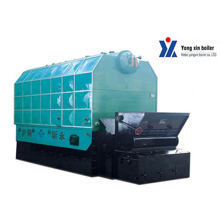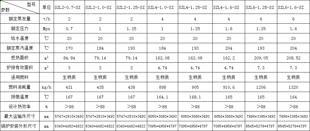 SZL雙鍋筒縱置式鏈條爐排生物質(zhì)鍋爐采用雙鍋筒縱置式布置,燃燒方式為鏈條爐排。額定蒸發(fā)量4~75t/h。鍋爐燃用生物質(zhì)成型固體燃料。爐膛兩側(cè)墻水冷壁采用膜式水冷壁結(jié)構(gòu);爐膛前、后墻水冷壁管向下延伸到爐排上部形成前后拱,這樣既增加鍋爐的密封性能,又增加了爐膛容積及受熱面,同時加固了后拱的強(qiáng)度。燃料自煤斗落到爐排上,隨爐排進(jìn)爐膛后燃燒,煙氣進(jìn)入對流管束區(qū)后經(jīng)隔煙墻,煙氣流向S型拐彎,利用慣性作用把煙氣中灰塵分離后落入下方設(shè)置的四個重力式自動落灰斗中,隨爐排運(yùn)轉(zhuǎn)與煤渣落入出渣斗,由出渣機(jī)排出爐體。